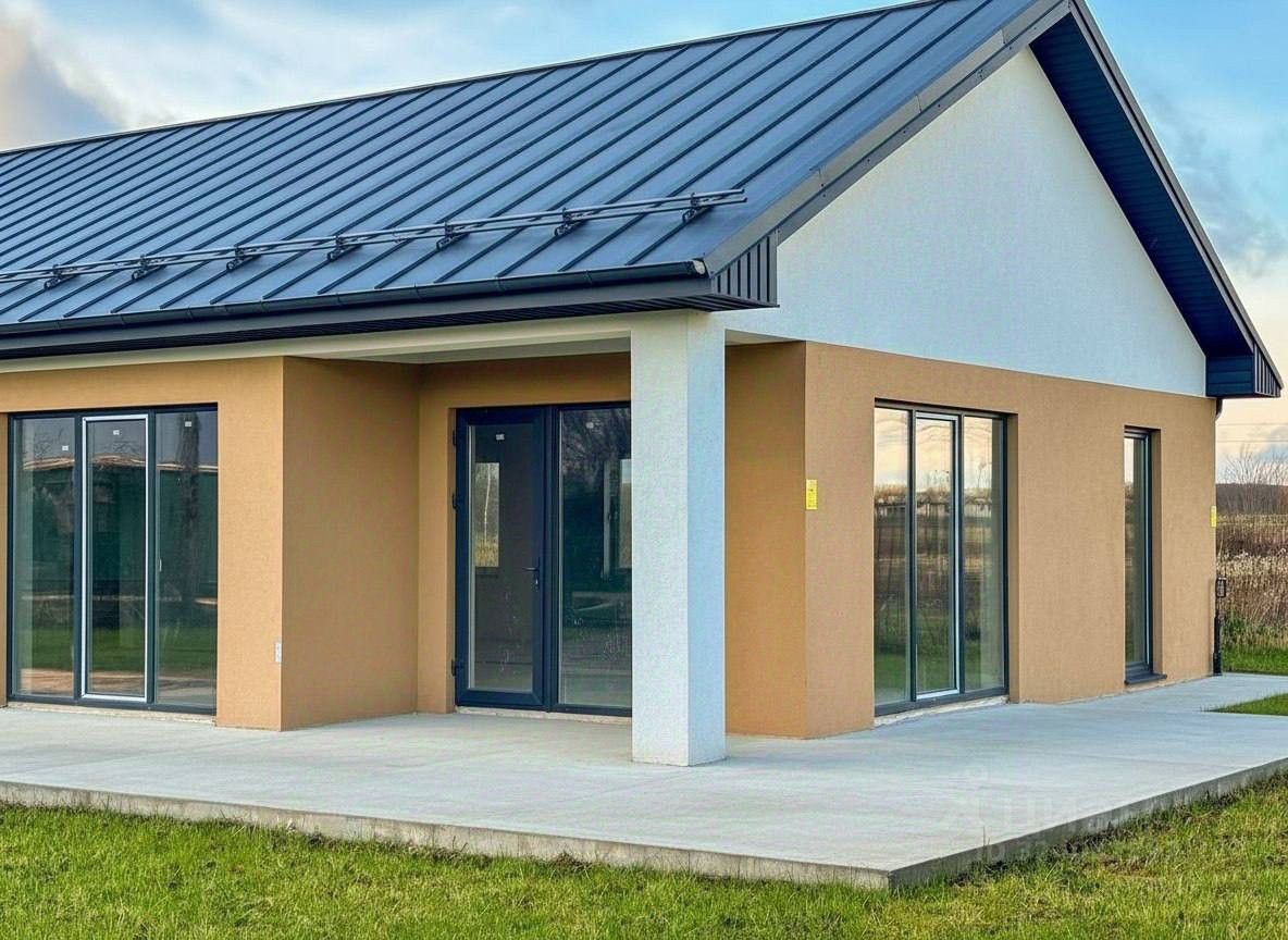 Характеристики дома: Площадь участка: 11 соток. Фундамент: монолитная плита толщиной 200 мм. Наружные стены: керамический блок 250 мм. Перегородки: керамический камень 120 мм. Утепление: пенополистирол 80 мм для наружных стен, минеральная вата 180 мм для кровли. Кровля: фальцевые панели, прочные и долговечные. Окна: 5-ти камерный профиль Deceuninck, стеклопакет двухкамерный, фурнитура ROTO. Отделка фасада: декоративная силиконовая штукатурка KOLORIT. Теплые полы: водяные по всему дому. Канализация: локальное очистное сооружение (ЛОС) ''ИТАЛ АНТЕЙ-5''. Вода: скважина глубиной 42 м.
