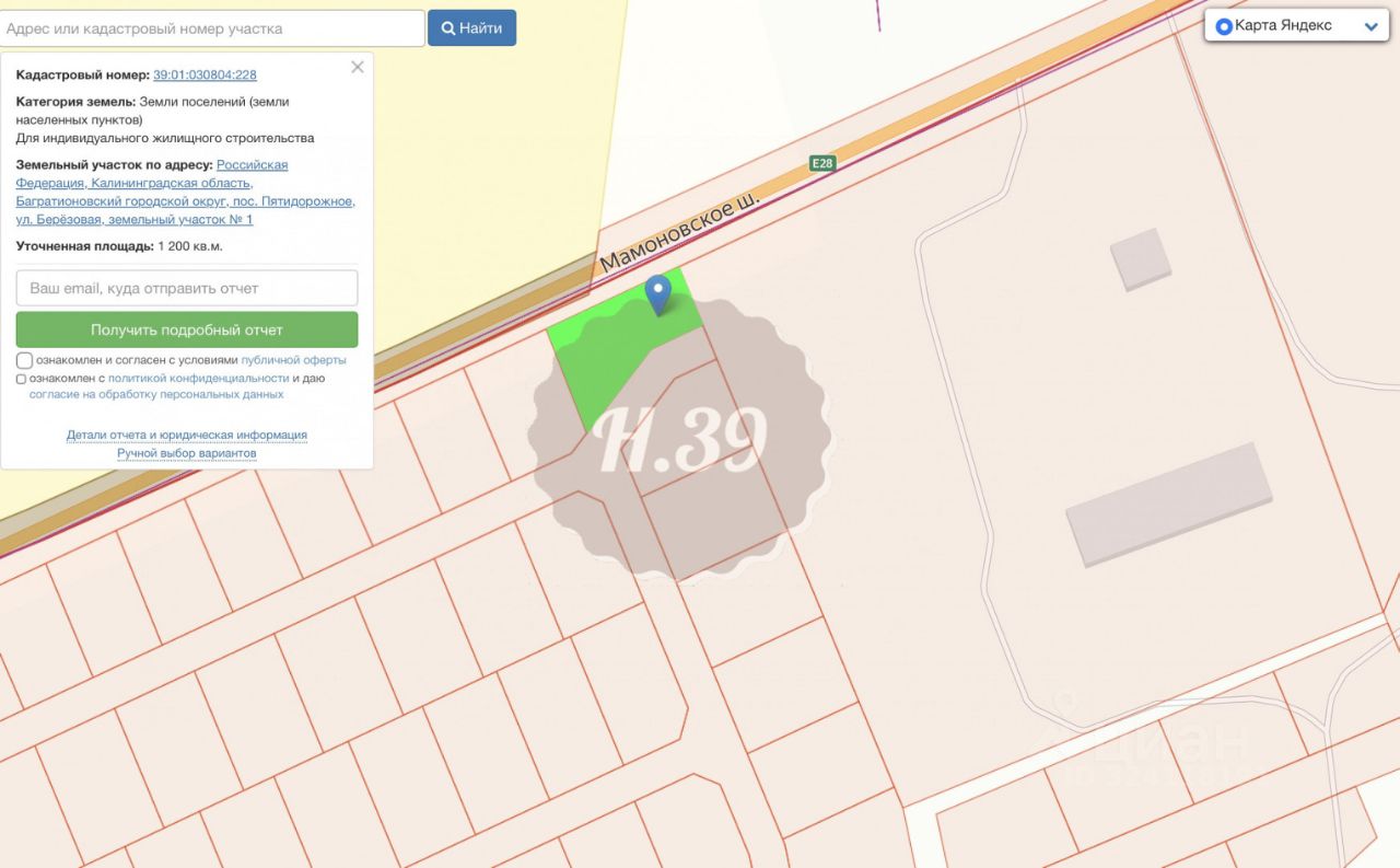 Арт. 126137145 Продаётся земельный участок площадью 12 соток в поселке Пятидорожное Калининградской области.