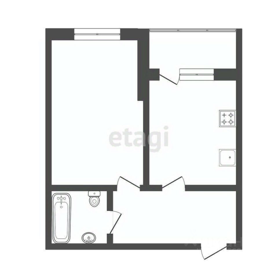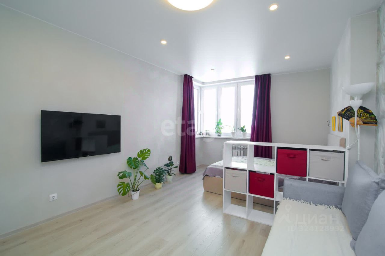 Просторная комната (возможна перепланировка для большего функционала), Современная кухня с удобной планировкой, Большие окна, наполняющие помещение естественным светом, Полностью готова к проживанию — заезжай и живи!