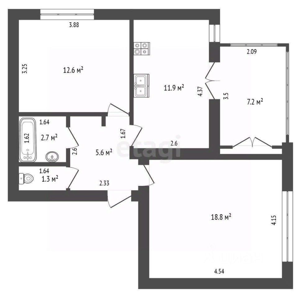 Продаётся 2-комнатная квартира с интересной планировкой в Амалиенау