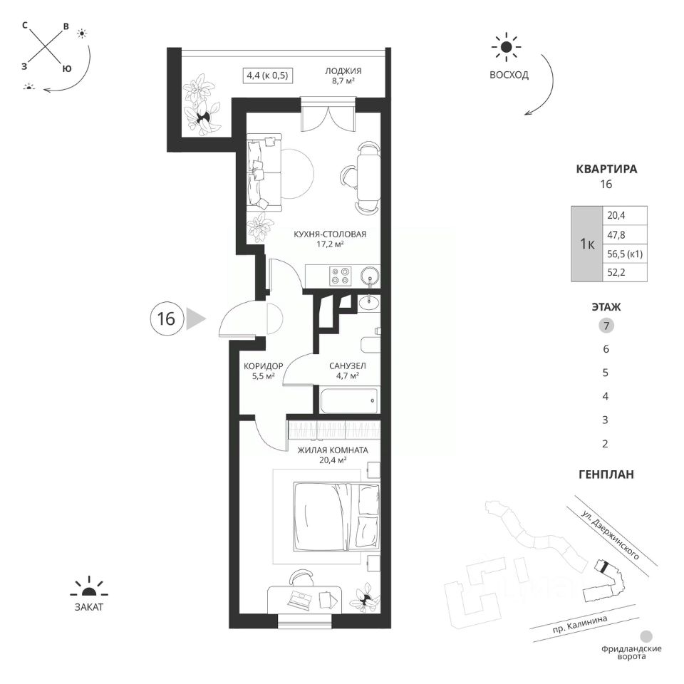 продам 1-к, Калинина проспект, 11714 484 792 ₽