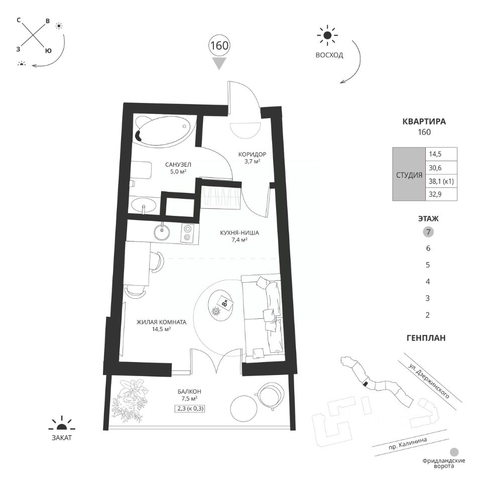 продам 1-к, Калинина проспект, 1178 640 856 ₽