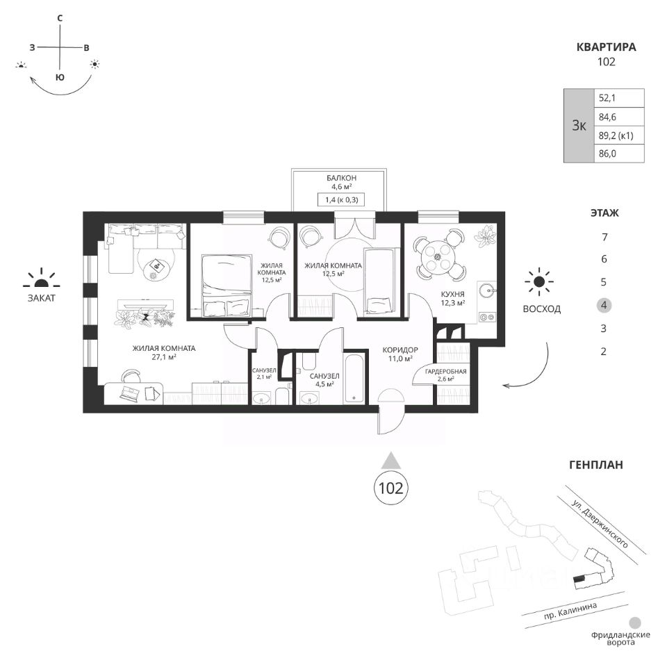 продам 3-к, Калинина проспект, 11717 813 008 ₽