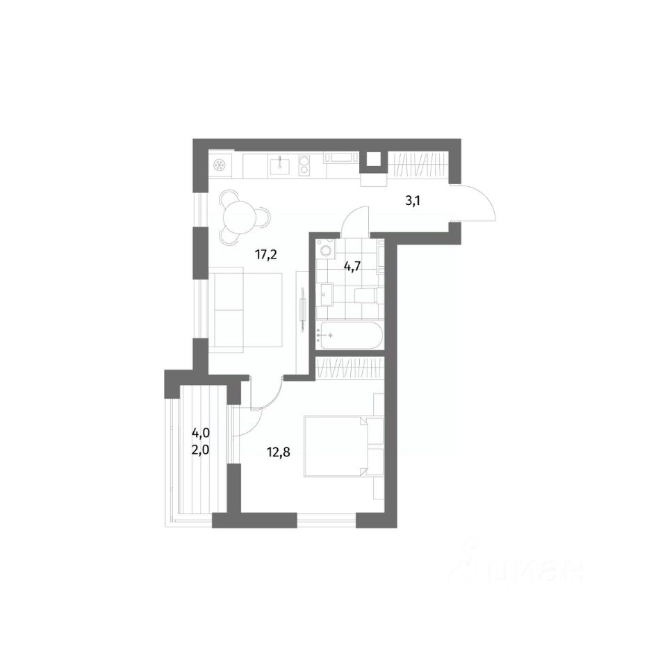продам 1-к, Имени Антона Пошкуса, 2 корп. 25 174 000 ₽