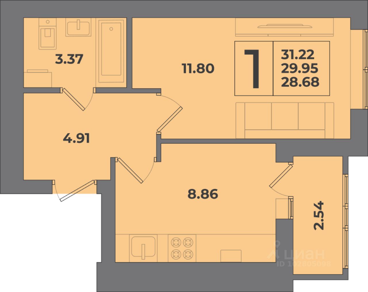 Общая площадь31,22 м2