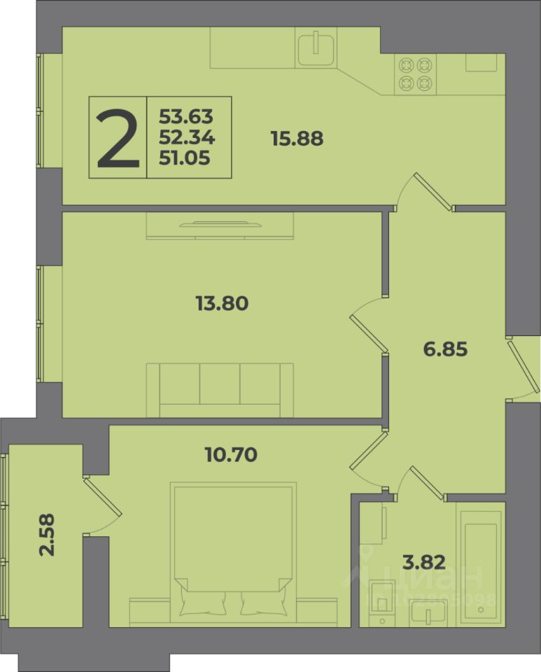 Общая площадь53,63 м2
