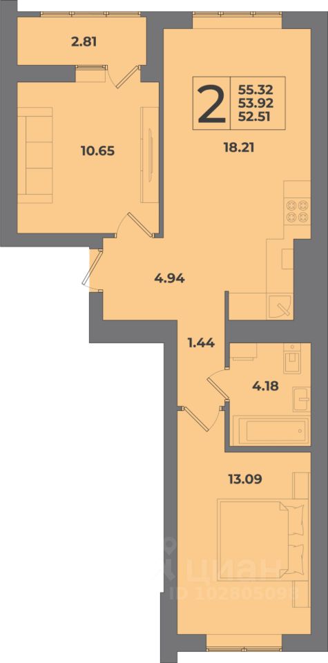 Общая площадь55,32 м2