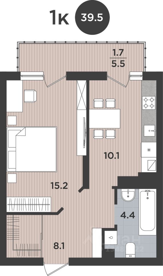 Общая площадь39,5 м2