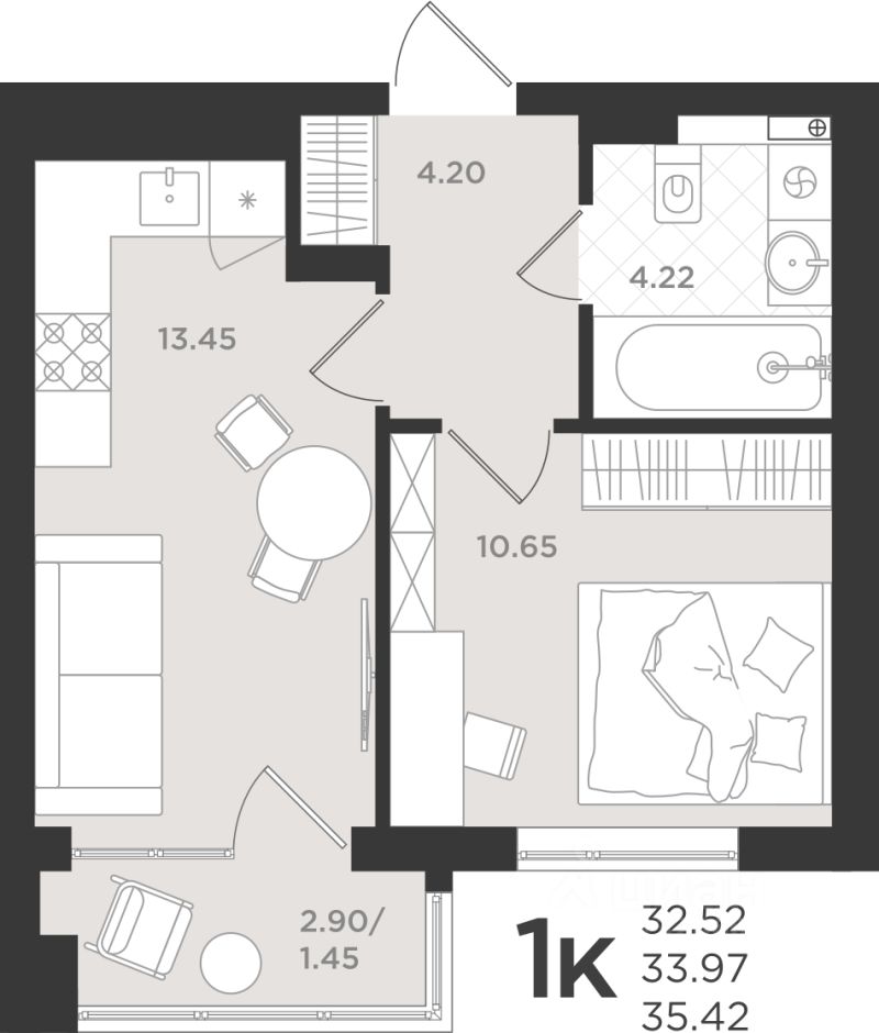 Общая площадь34,32 м2