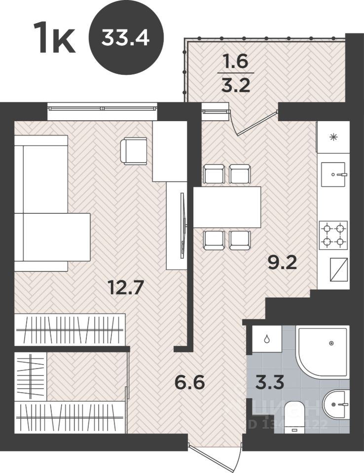 Общая площадь33,4 м2