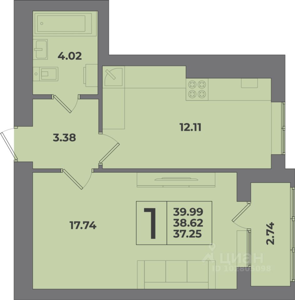 Общая площадь39,99 м2