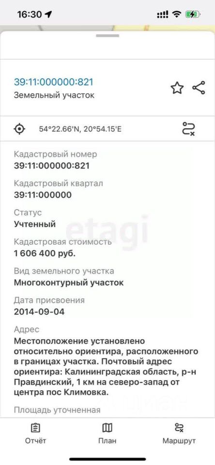 Расположение: Поселок Климовка, Правдинский район. Площадь земельного участка: 57.09 га : 1. 39:11:050023:191 1га 2. 39:11:050023:195 6,04 га 3. 39:11:050021:127 1.14 га 4. 39:11:050021:128 8.7 га 5. 39:11:050021:129 8.21 га 6. 39:11:000000:821 32 га