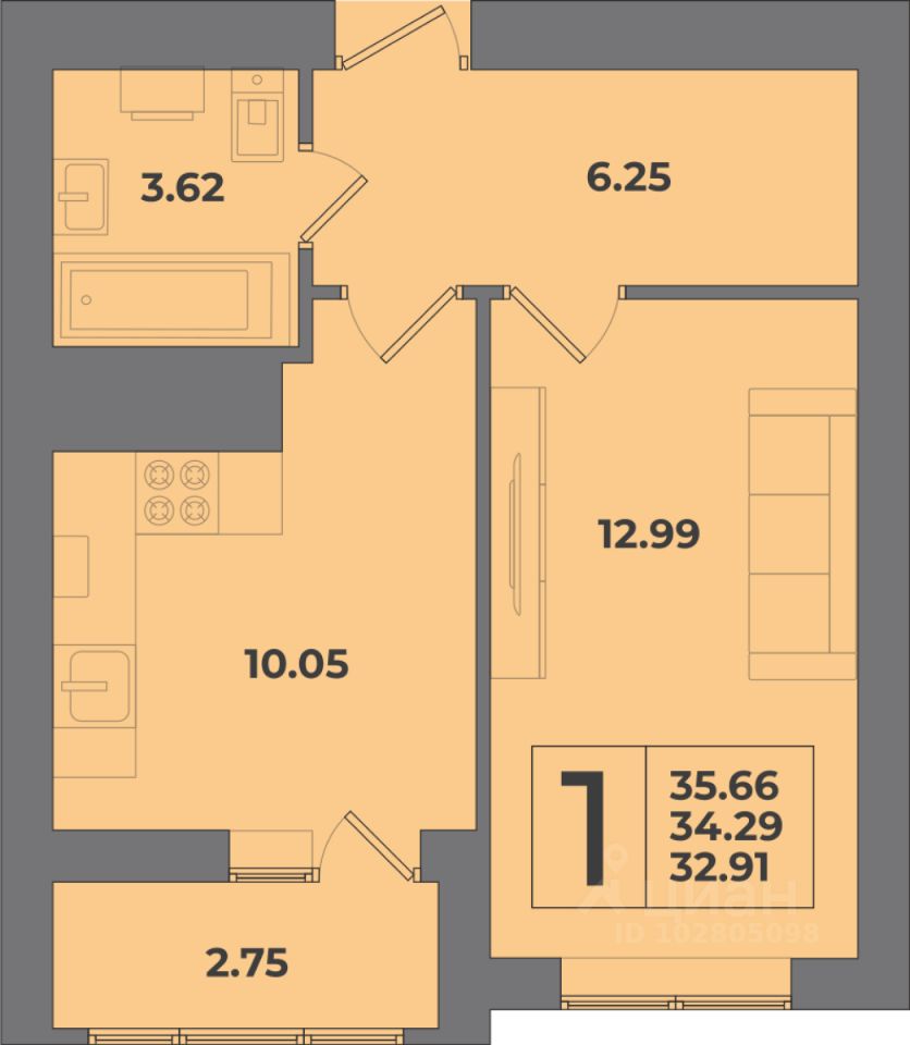 Общая площадь35,66 м2