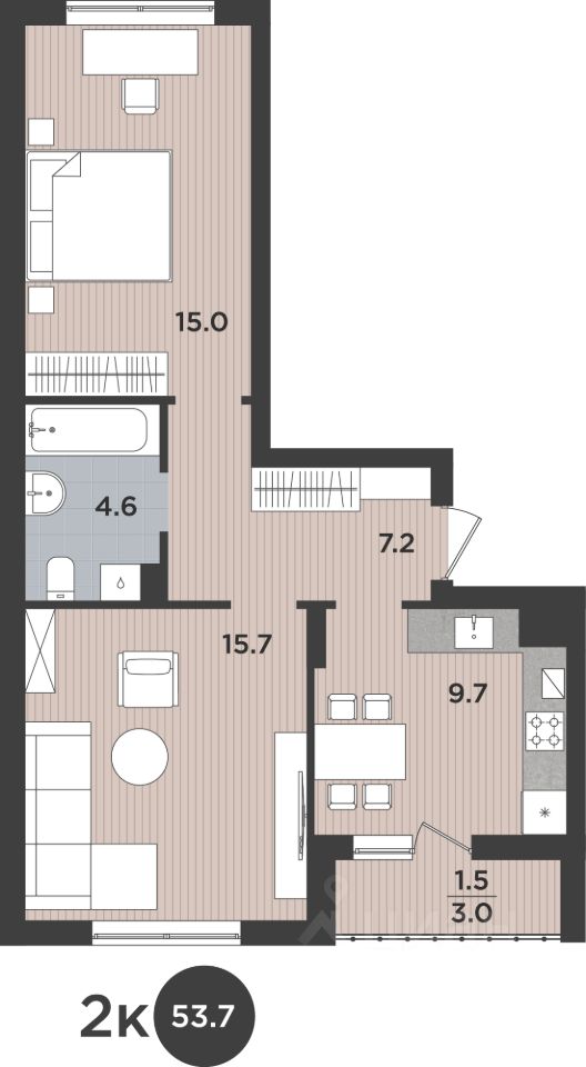 Общая площадь53,7 м2