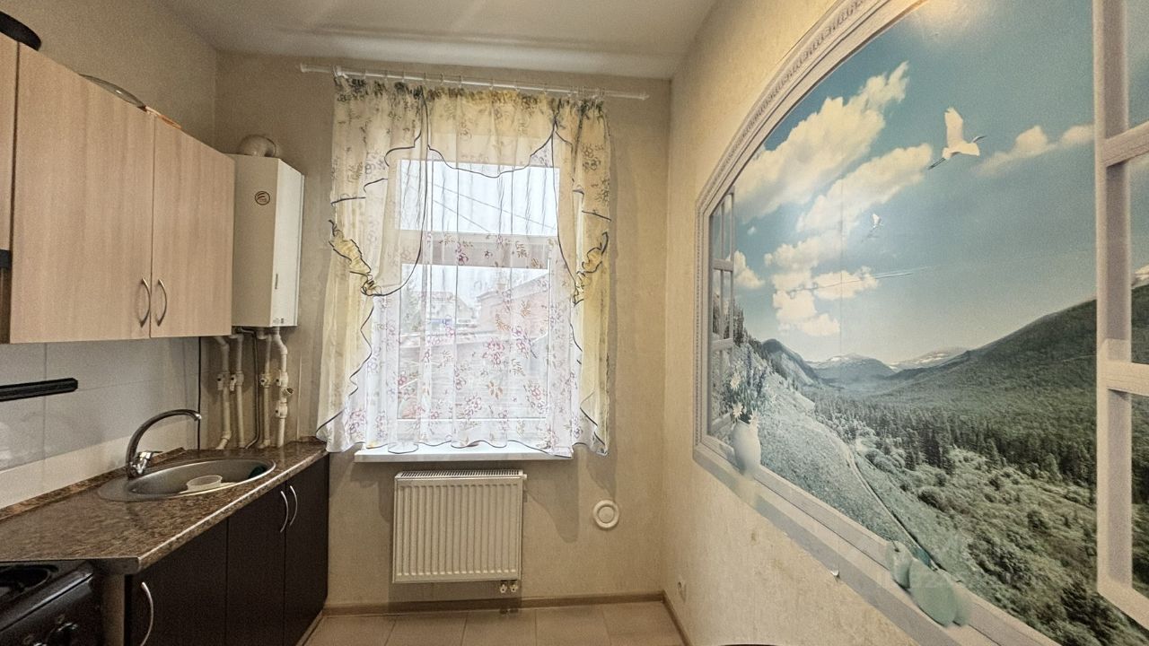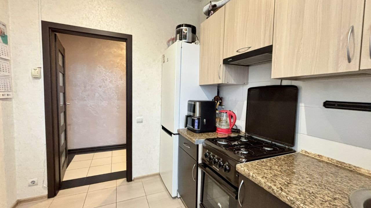 Окна выходят на тихий двор. Квартира после косметического ремонта: электрическая проводка, Коммуникация водоснабжения и водоотведения поменяны. В помещении проведён газ, Установлен газовый двухконтурный котел. Район обладает развитой инфраструктурой: в шаговой доступности находятся детский сад, средняя школа 1 и школа имени И. Прокопенко, супермаркет ''Пятерочка'', продуктовые магазины, детская площадка, поликлиника.