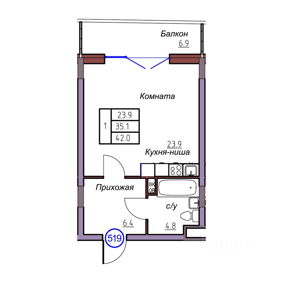 Общая площадь42 м2