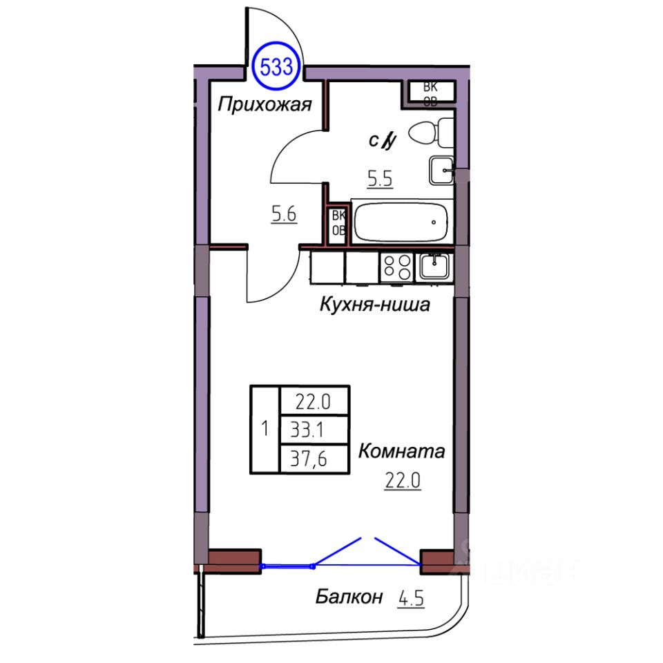 Общая площадь37,6 м2