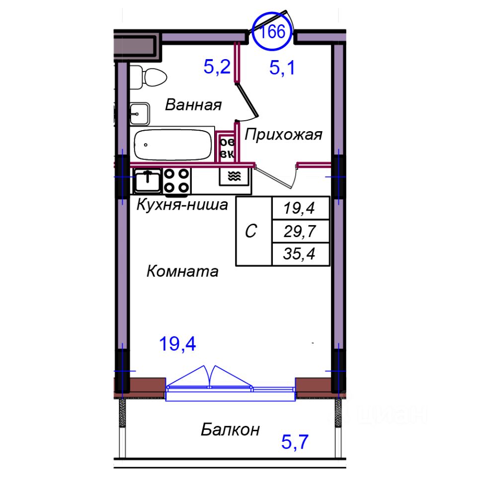 Общая площадь35,4 м2