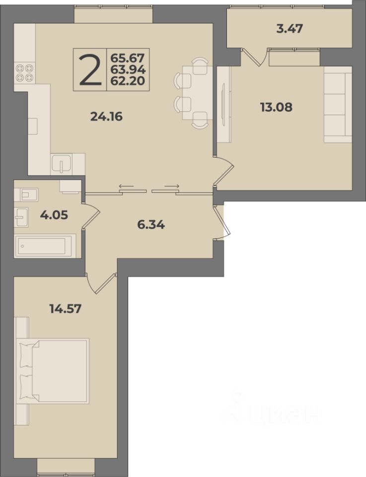 Продаётся 2-комнатная квартира в сданном доме (Дом 3 (1 этап)), срок сдачи: IV-кв. 2025, общей площадью 65.67 кв.м., на 1 этаже. Новый жилой комплекс ''Суздальский-3'' от Группы компаний ''Модуль-Стройград'' расположен в Ленинградском районе Калининграда на улице Суздальской.