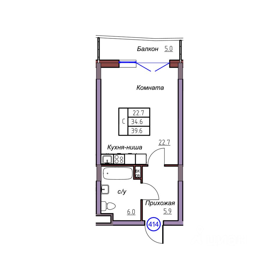 Общая площадь39,6 м2