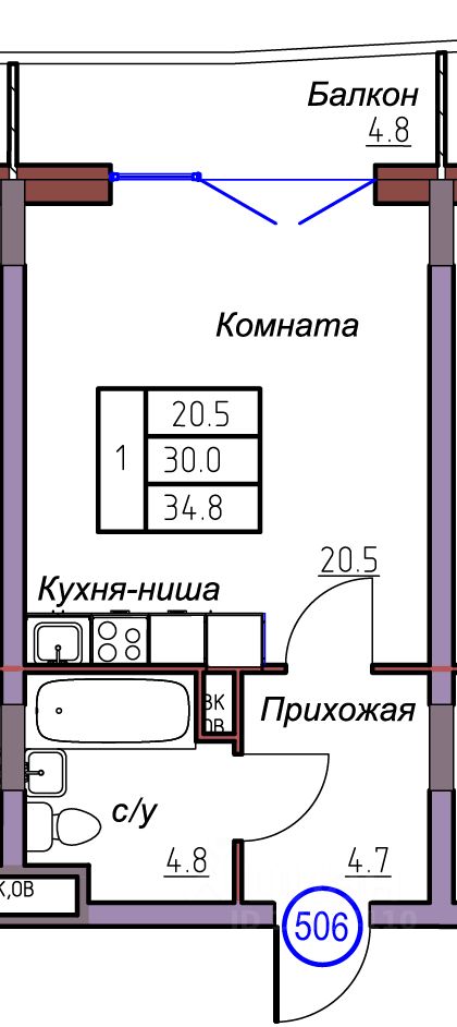 Общая площадь34,8 м2