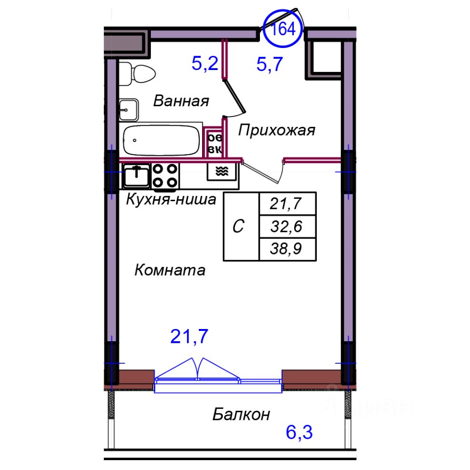 Жилая площадь21,7 м2