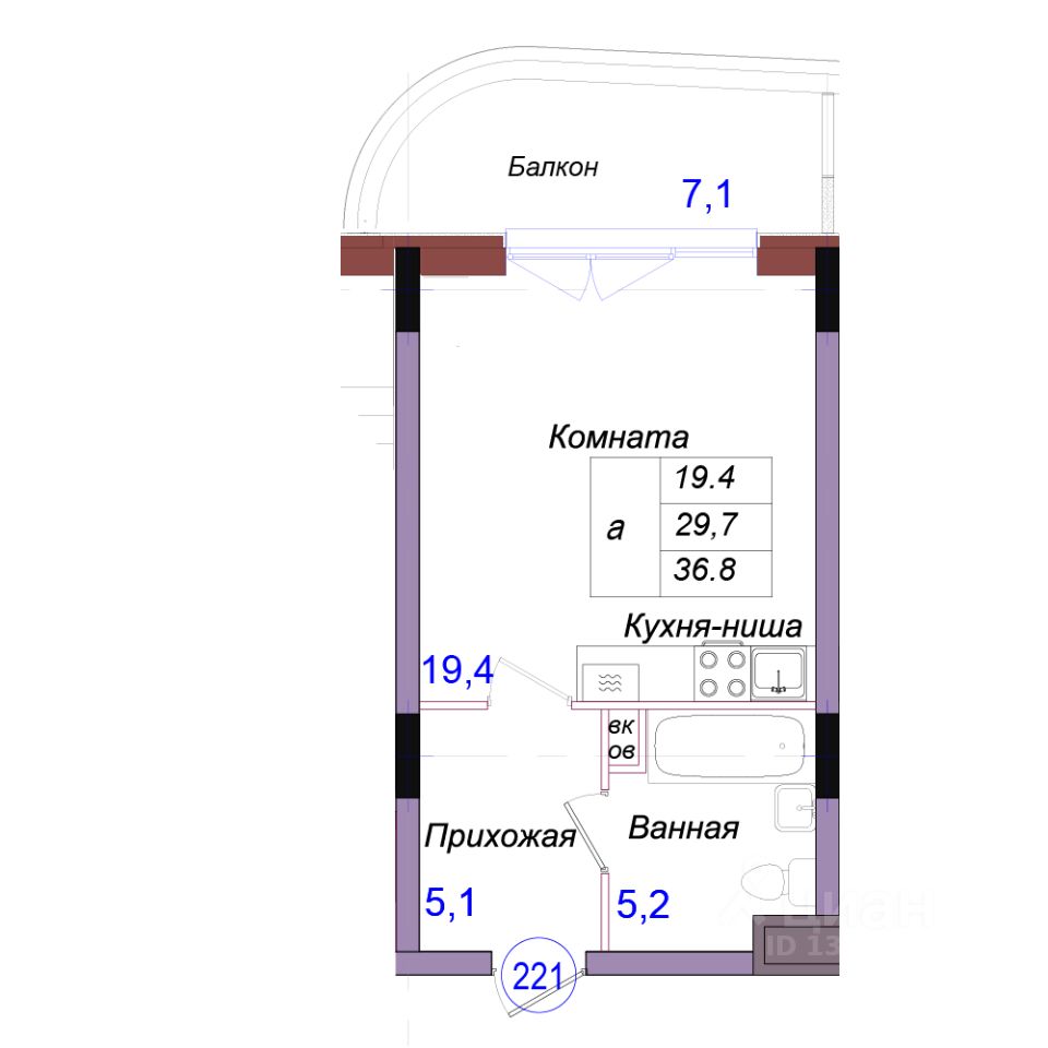 Общая площадь36,8 м2