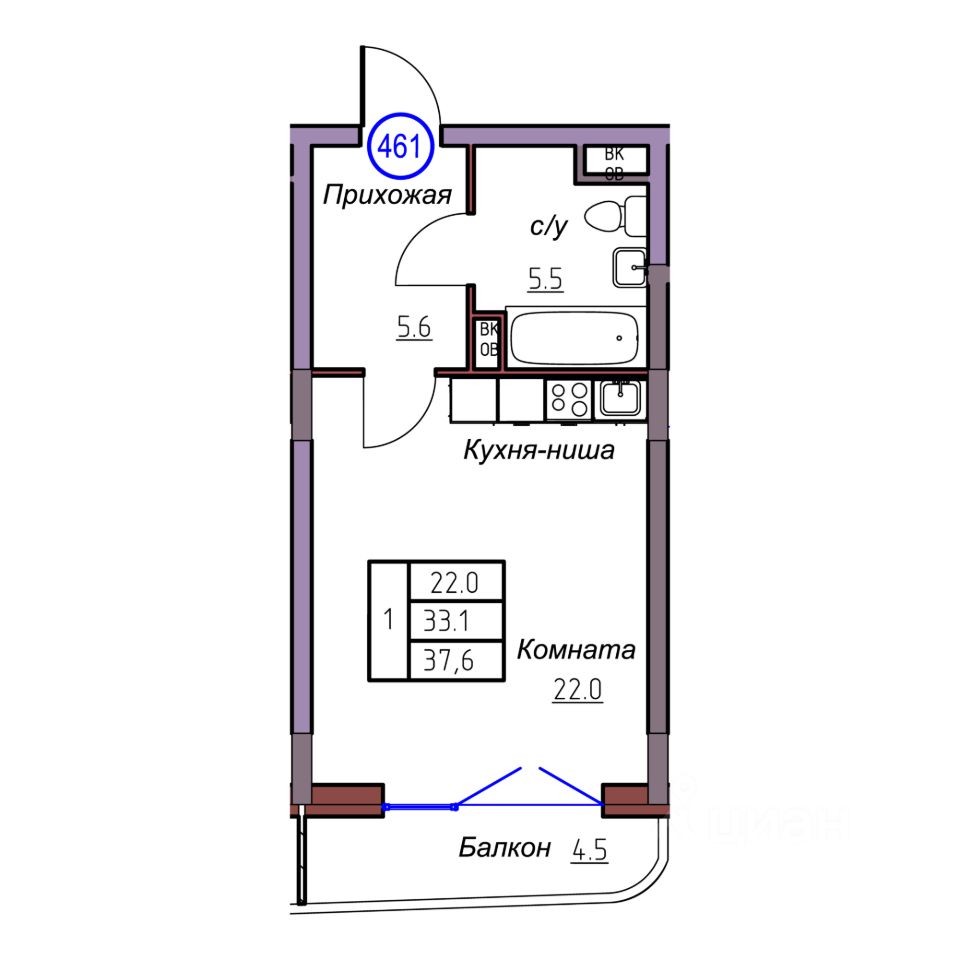 Общая площадь37,6 м2