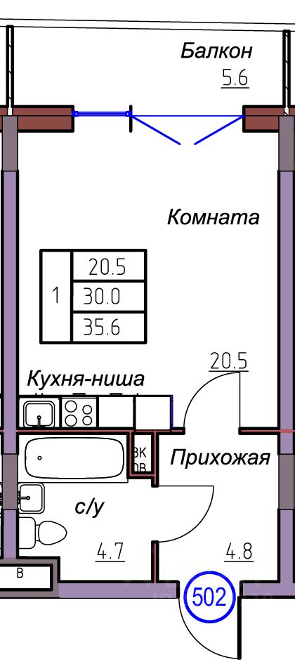 Общая площадь35,6 м2