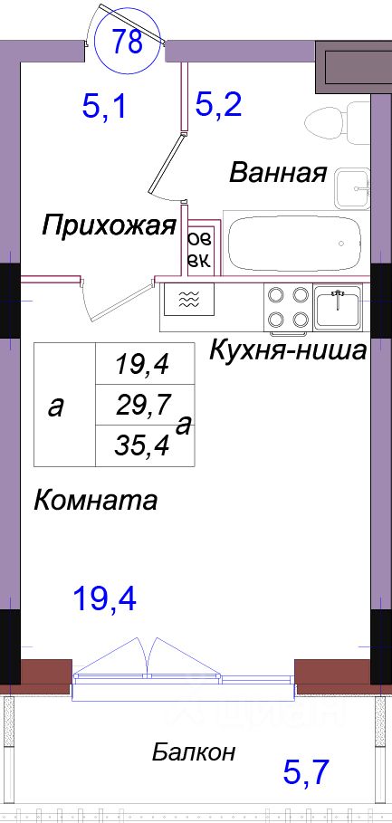 Общая площадь35,4 м2