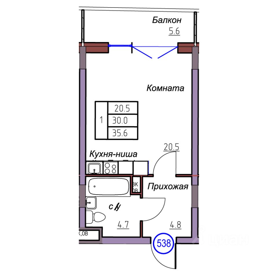 Общая площадь35,6 м2