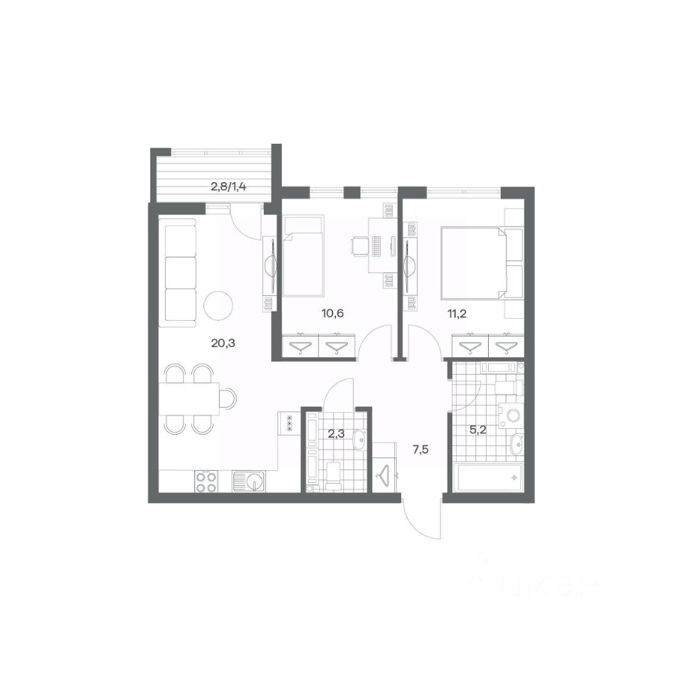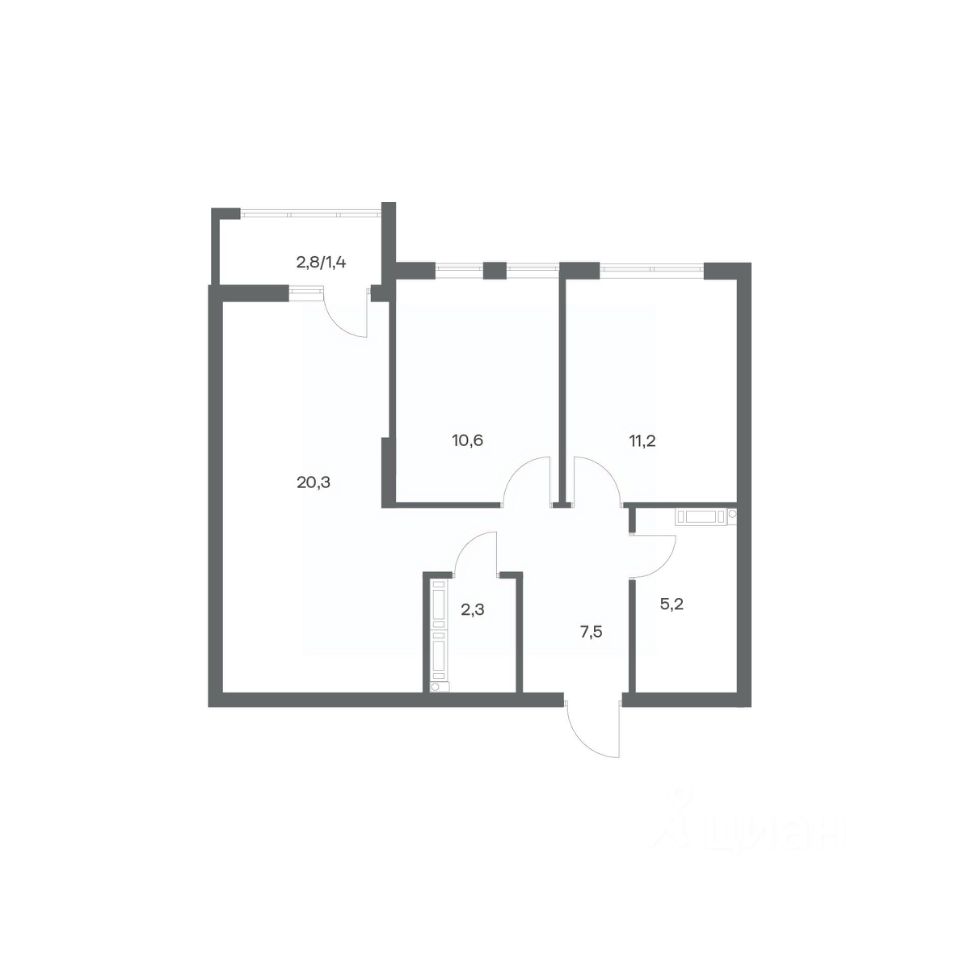 Продается квартира площадью 58.5 м² на 7 этаже 3 секции в Гагарина 30 от компании ГК ''ТРЕСТ''. Площадь кухни 20.3 м². Жилой комплекс комфорт-класса ''Гагарина 30'' расположен в Ленинградском районе Калининграда на улице Юрия Гагарина. Жилой комплекс включает в себя три корпуса высотой 9-18 этажей. Срок сдачи намечен на 1 квартал 2028 года.