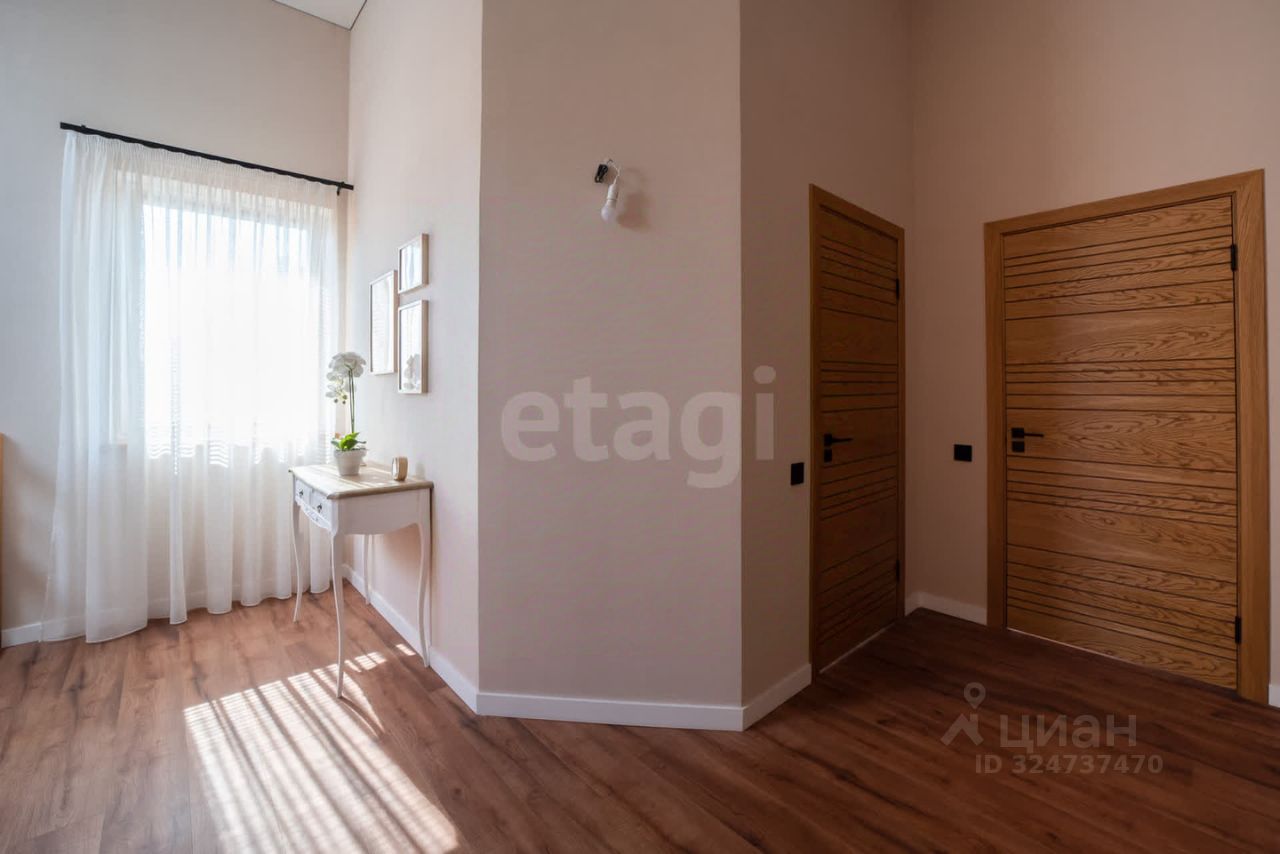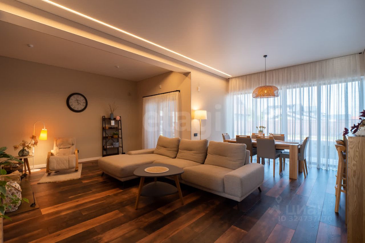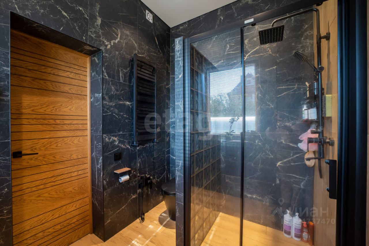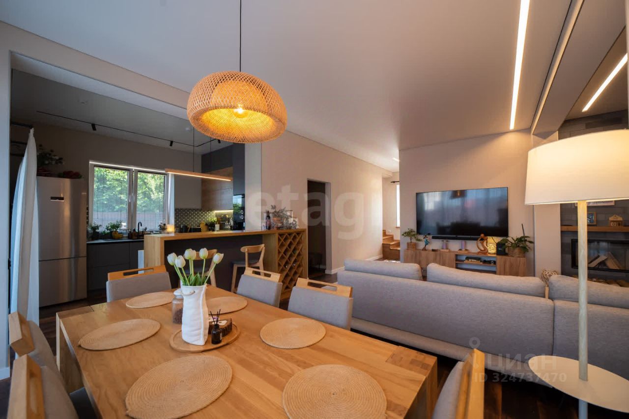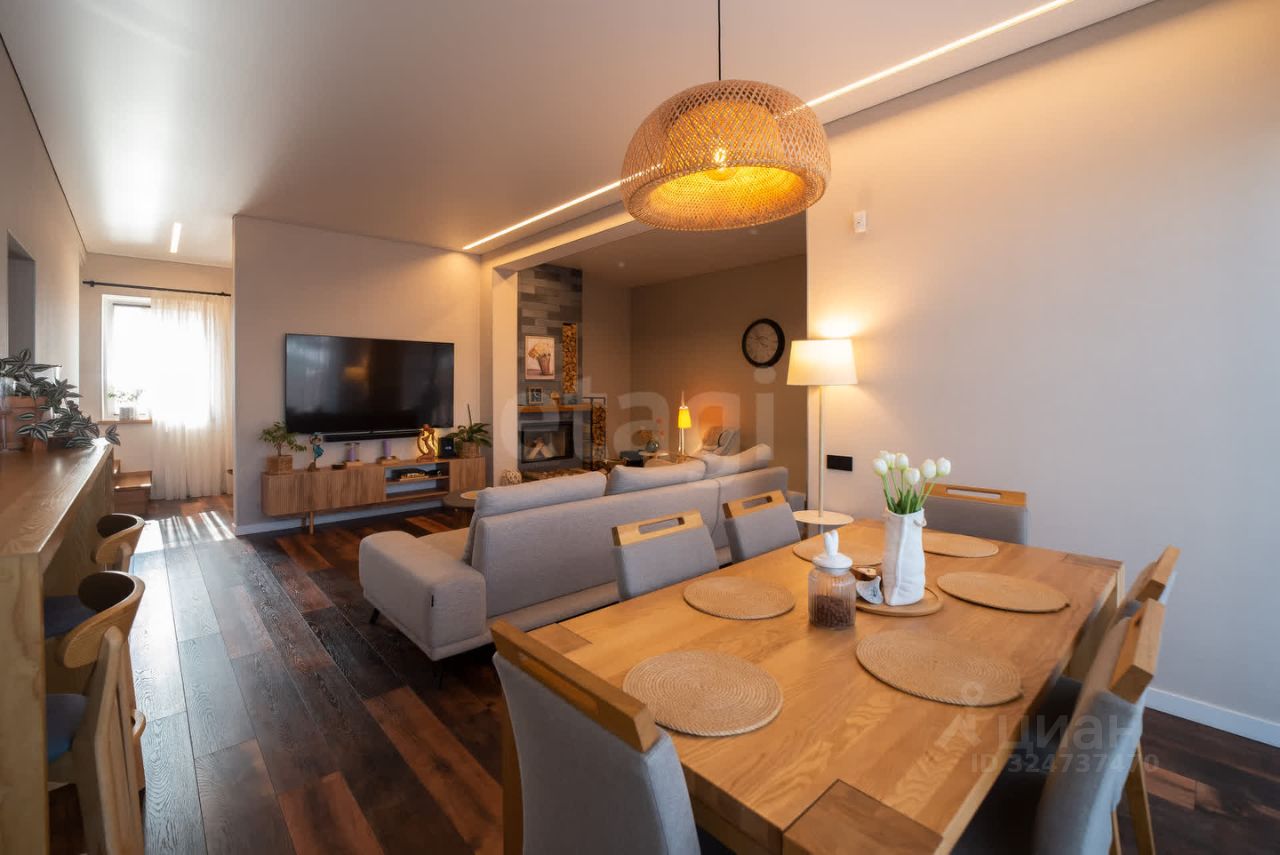 Планировка продумана, учтены все нюансы для комфортного проживания. В готовом доме на первом этаже (90 м²) расположены просторная кухня 22 м² со встроенной техникой, гостиная 24,5 м² с камином, прихожая, гардеробная и санузел. Из всех помещений первого уровня есть выход на террасу. Второй этаж (89,5 м²) включает три спальни (17 м², 17,6 м², 17,2 м²), две из которых имеют выход на балконы, и совмещенный санузел 10 м². Высота потолков — 3,5 м, во всех комнатах установлены кондиционеры и система ''Теплый пол''. Натяжные потолки с LED-освещением, межкомнатные двери из натурального шпона, лестница из массива дерева, напольное покрытие — кварцвинил. Дом полностью меблирован и готов к заселению. Во втором доме на первом этаже расположен гараж с двумя подъемными воротами. На втором этаже располагаются жилые комнаты, кухня-гостиная, санузлы. Окрестности предлагают активный отдых: озеро Синявино с чистотой, привлекающей дайверов, оборудованный пляж, прокат SUP-бордов и каяков, кафе и бани. В 10 минутах ходьбы — Балтийское море с лучшими песчаными пляжами, ресторанами и гостиницами. Транспортная доступность позволяет быстро добраться до центра Калининграда и курортных зон области. Дом сочетает приватность загородной жизни с близостью к инфраструктуре. Звоните!