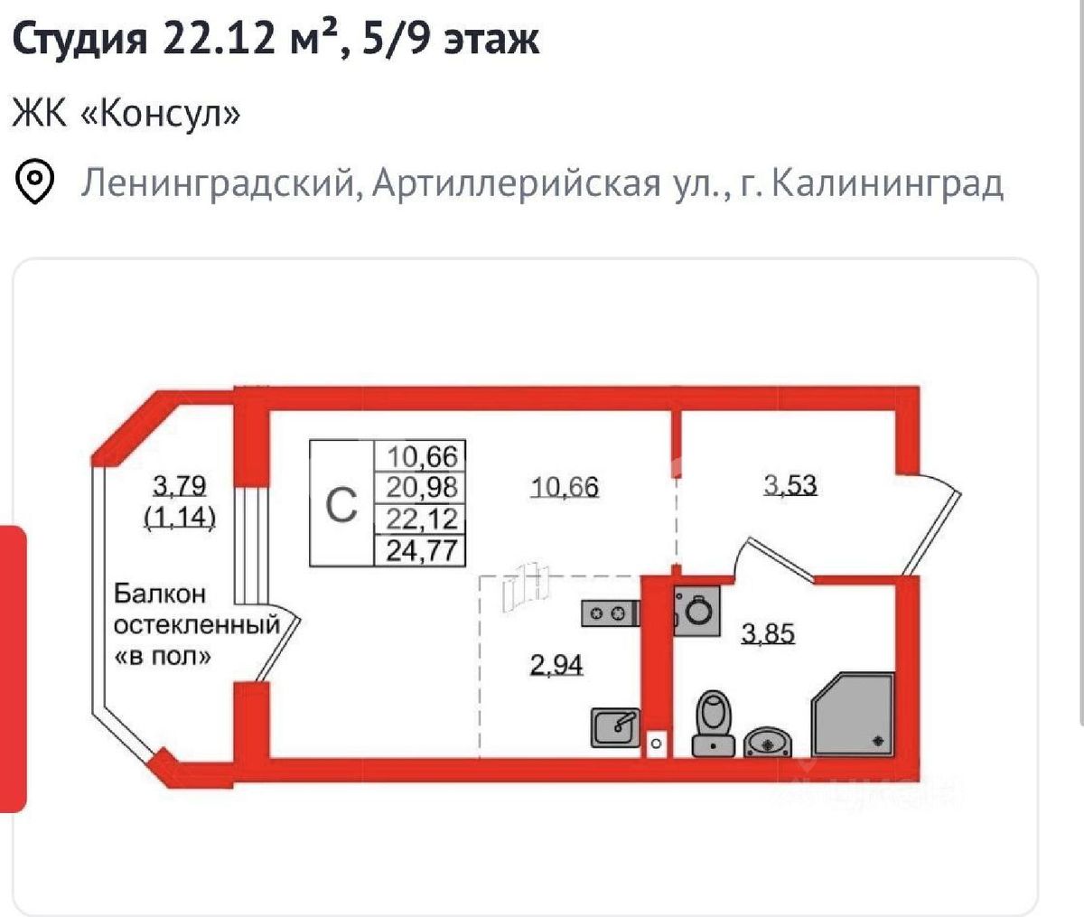 Комфортная студия в ЖК бизнес-класса ''Консул'' Площадь — 24,77 м² | | Автономное отоплениеВ подарок от собственника дизайн - проект и смета для ремонта!Преимущества:Полная стоимость в договоре.Просторная комнатаСобственная лоджия с панорамным остеклением.Отличная инвестиция в аренду недвижимости или для личного проживания. Удобное расположение:Лучший район города по развитости инфраструктуры — все рядомДо центра города — 5 мин, до моря — 25 минРядом ул. Невского и Гагарина — удобный выезд до любой части города.В шаговой доступности: детсады, школы, РАНХиГС, магазины, ТЦ, спортзал, медцентры, ботанический сад и Верхний пруд.