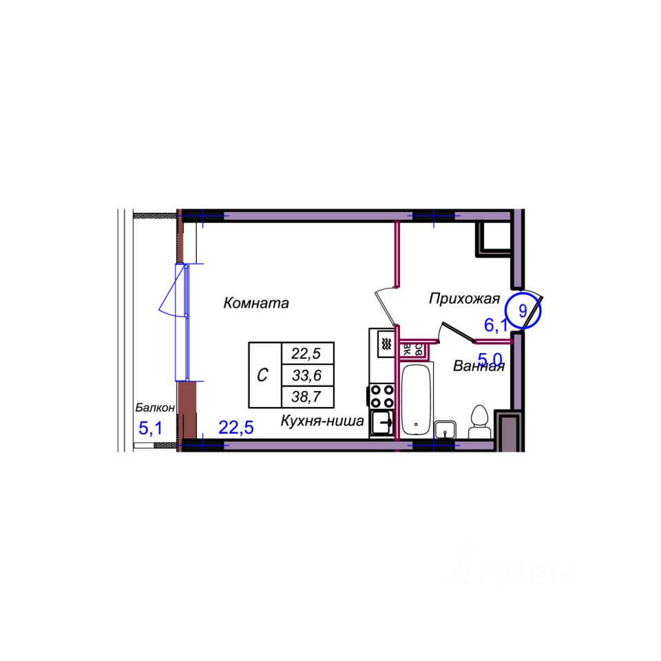 Общая площадь38,7 м2