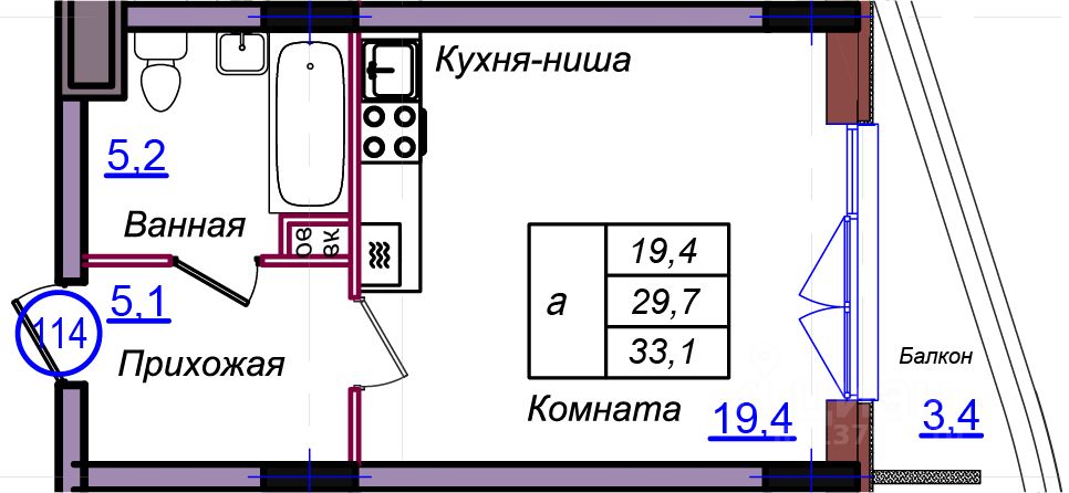 Общая площадь33,1 м2