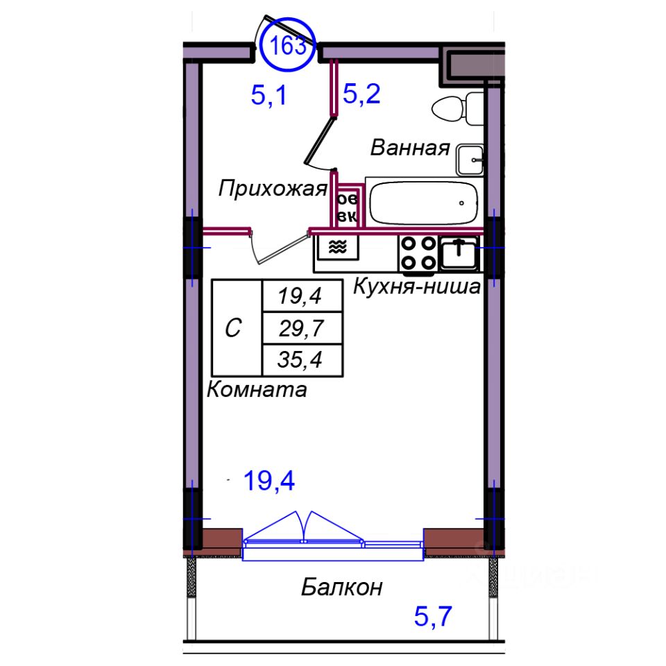 Общая площадь35,4 м2