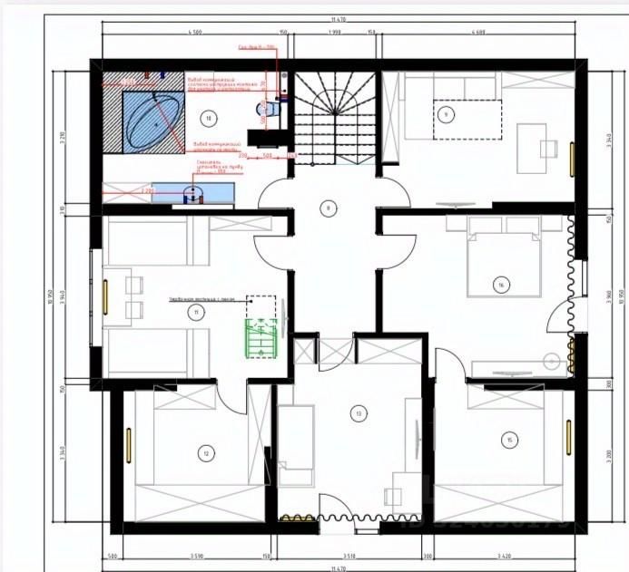 2 этаж: просторный холл 12,6 кв.м., кабинет 15 кв.м., две детских комнаты 17.7 кв.м. и 15 кв.м. с индивидуальными гардеробными по 11 кв.м. каждая, спальня 17 кв.м.