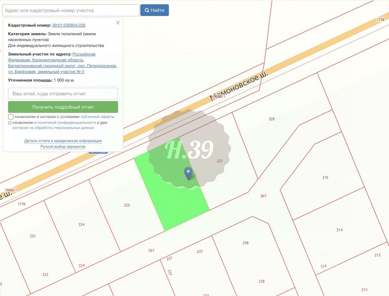 Зона застройки Ж-4. Кадастровый номер участка 39:01:0308042:226