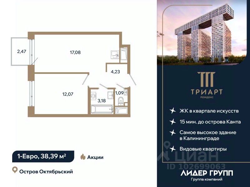 продам 1-к, Солнечный бульвар10 365 300 ₽