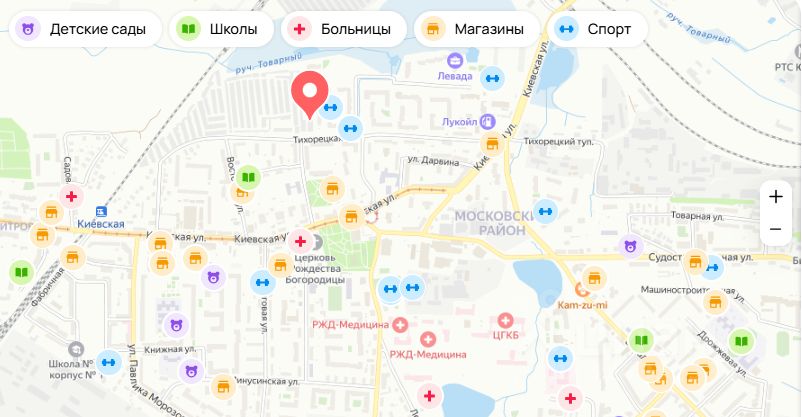 Район с хорошо развитой инфраструктурой, включая магазины и прогулочные зоны Рядом находятся школы, детские сады, клиники , несколько больших супермаркетов, поликлиника и больница Остановки oбщecтвeнного транспорта Южный вокзал в 5 минутах езды центр города 10-15 минут