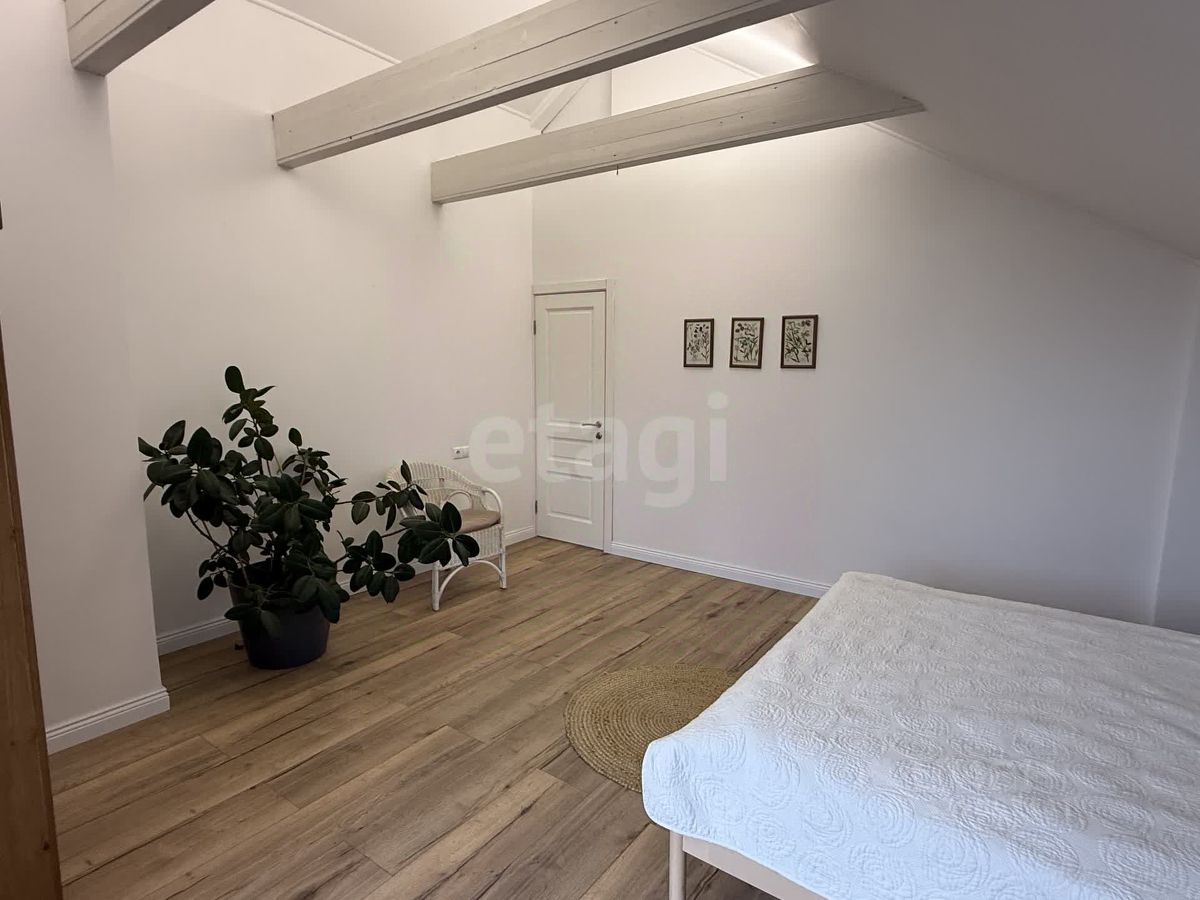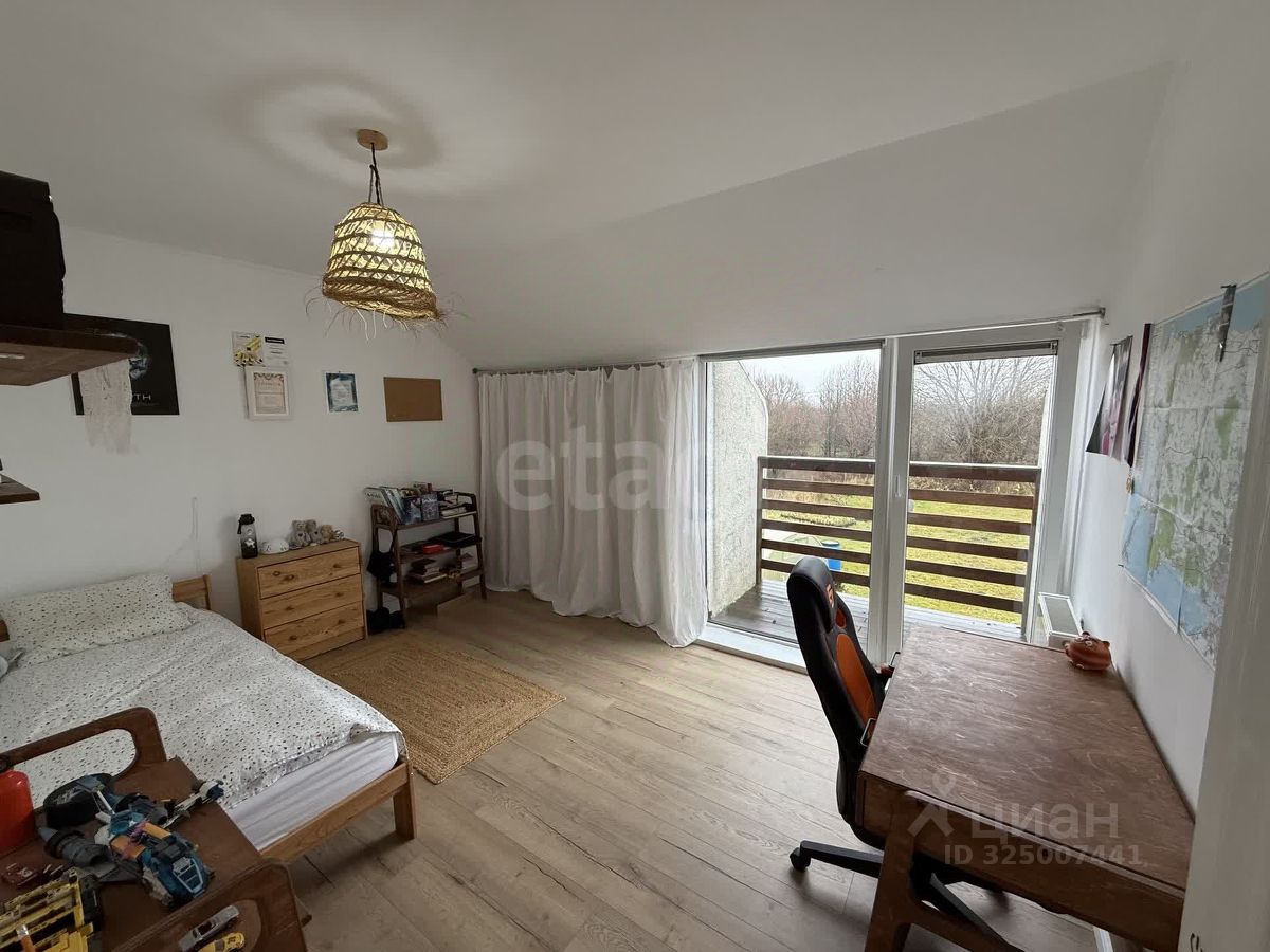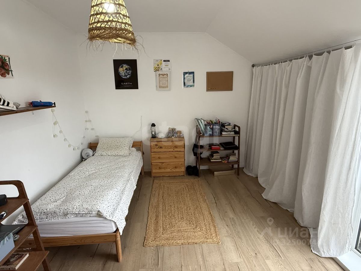 Дом возведен с применением современных материалов, с кровлей и фасадом из гибкой черепицы, обеспечивающей отличную теплоизоляцию. Панорамное остекление с пятикамерными стеклопакетами наполняет интерьер естественным светом. Планировка включает пять комнат и два санузла. На первом этаже расположена просторная кухня-гостиная, спальня-кабинет и санузел с душевой. Второй этаж занимают три спальни и большой санузел с ванной, а также есть зона для организации кабинета или гардеробной. Дополнительные преимущества — две кладовые и технический подвал размером 3х3 метра.