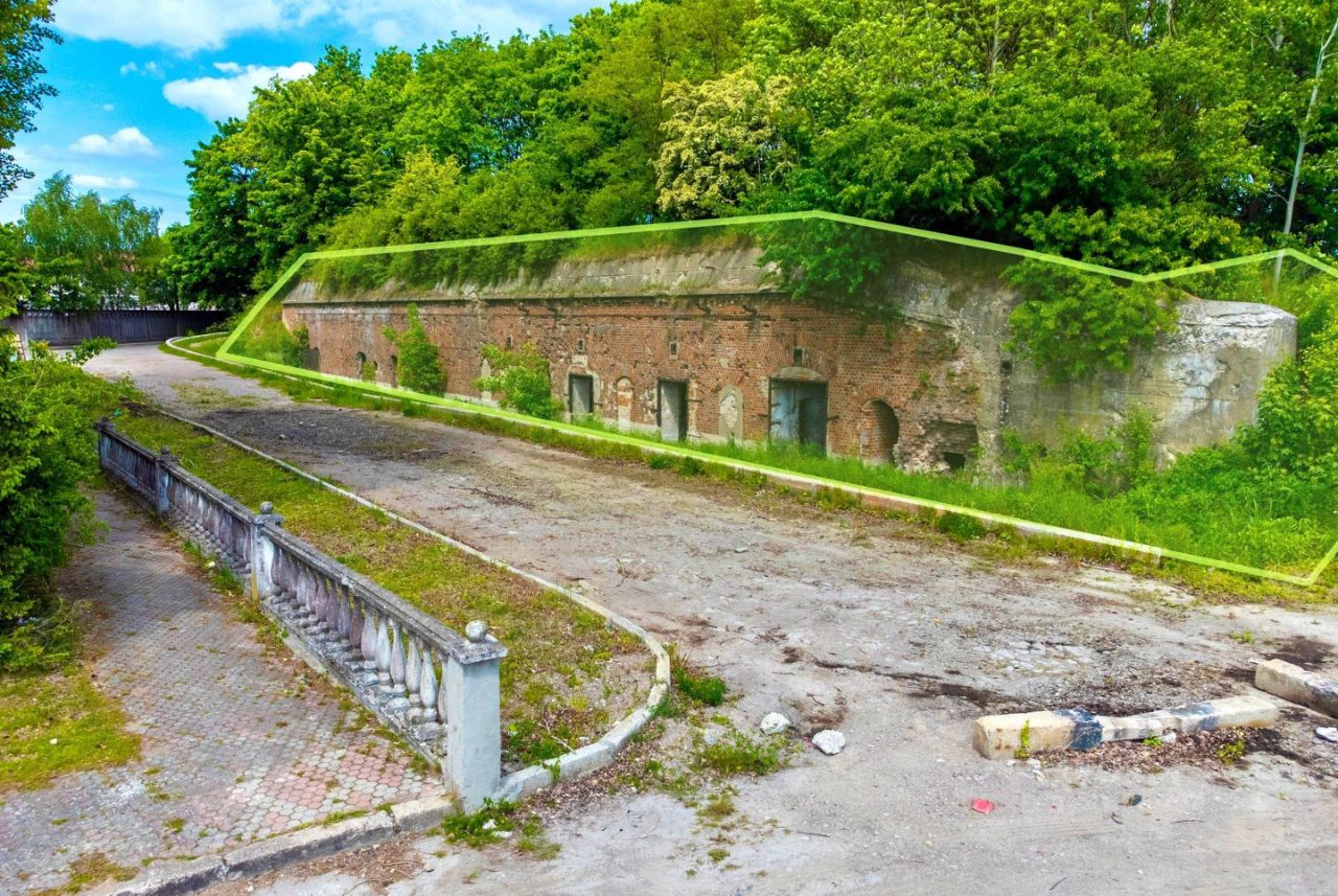 Имущественный комплекс в северо-западной части города, межфортовское сооружение 1887-1890 гг., не является объектом культурного наследия. Часть оборонительных укреплений города Кёнигсберга. Развитый район со всей инфраструктурой. Хорошая транспортная доступность, до остановки общественного транспорта - 350 м.
