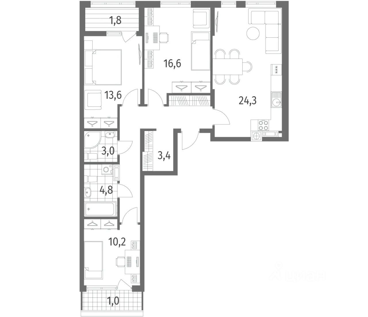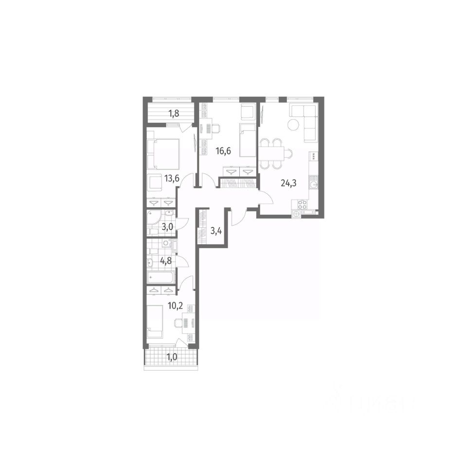 Продается квартира площадью 91.5 м² на 7 этаже 1 секции в Дом на Красной от компании ГК ''ТРЕСТ''. Площадь кухни 24.3 м². Жилой комплекс комфорт-класса ''Дом на Красной'' расположен в Центральном районе Калининграда на пересечении улиц Красная и Псковская. Жилой комплекс включает в себя два дома высотой 8 этажей. Срок сдачи намечен на 4 квартал 2026 года.