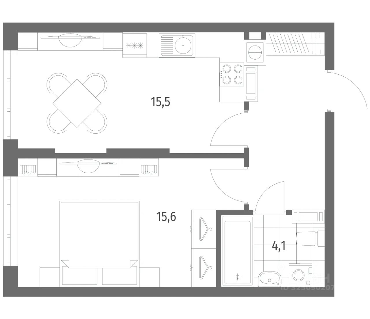 Продается квартира площадью 42.4 м² на 4 этаже 7 секции в Дом на Красной от компании ГК ''ТРЕСТ''. Площадь кухни 15.5 м². Жилой комплекс комфорт-класса ''Дом на Красной'' расположен в Центральном районе Калининграда на пересечении улиц Красная и Псковская. Жилой комплекс включает в себя два дома высотой 8 этажей. Срок сдачи намечен на 4 квартал 2026 года.