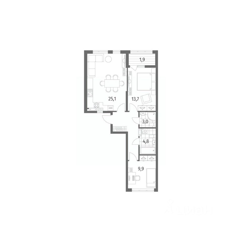 Продается квартира площадью 67.6 м² на 8 этаже 2 секции в Дом на Красной от компании ГК ''ТРЕСТ''. Площадь кухни 25.1 м². Жилой комплекс комфорт-класса ''Дом на Красной'' расположен в Центральном районе Калининграда на пересечении улиц Красная и Псковская. Жилой комплекс включает в себя два дома высотой 8 этажей. Срок сдачи намечен на 4 квартал 2026 года.