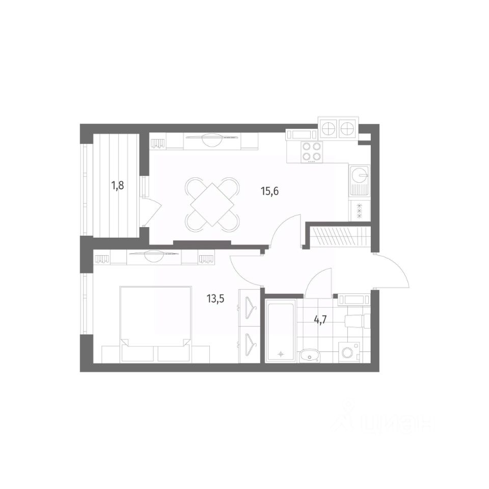 Продается квартира площадью 39.9 м² на 5 этаже 7 секции в Дом на Красной от компании ГК ''ТРЕСТ''. Площадь кухни 15.6 м². Жилой комплекс комфорт-класса ''Дом на Красной'' расположен в Центральном районе Калининграда на пересечении улиц Красная и Псковская. Жилой комплекс включает в себя два дома высотой 8 этажей. Срок сдачи намечен на 4 квартал 2026 года.