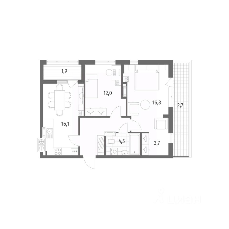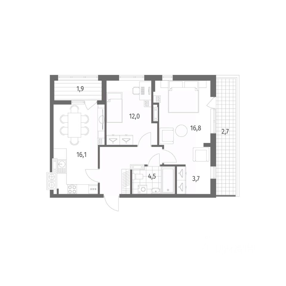 Продается квартира площадью 65.7 м² на 8 этаже 8 секции в Дом на Красной от компании ГК ''ТРЕСТ''. Площадь кухни 16.1 м². Жилой комплекс комфорт-класса ''Дом на Красной'' расположен в Центральном районе Калининграда на пересечении улиц Красная и Псковская. Жилой комплекс включает в себя два дома высотой 8 этажей. Срок сдачи намечен на 4 квартал 2026 года.