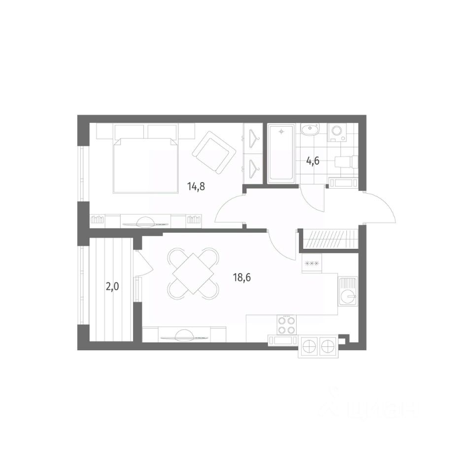 Продается квартира площадью 44.9 м² на 2 этаже 1 секции в Дом на Красной от компании ГК ''ТРЕСТ''. Площадь кухни 18.6 м². Жилой комплекс комфорт-класса ''Дом на Красной'' расположен в Центральном районе Калининграда на пересечении улиц Красная и Псковская. Жилой комплекс включает в себя два дома высотой 8 этажей. Срок сдачи намечен на 4 квартал 2026 года.