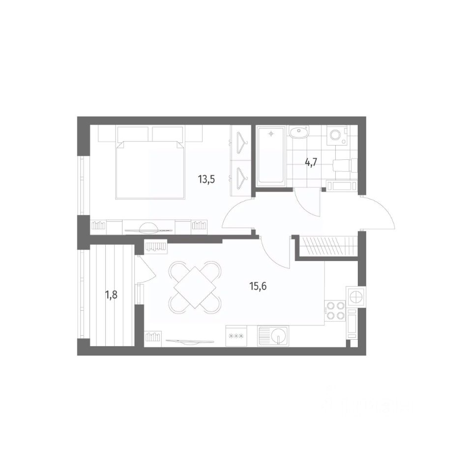 Продается квартира площадью 39.9 м² на 6 этаже 7 секции в Дом на Красной от компании ГК ''ТРЕСТ''. Площадь кухни 15.6 м². Жилой комплекс комфорт-класса ''Дом на Красной'' расположен в Центральном районе Калининграда на пересечении улиц Красная и Псковская. Жилой комплекс включает в себя два дома высотой 8 этажей. Срок сдачи намечен на 4 квартал 2026 года.
